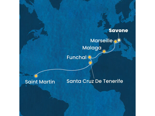 Italie, France, Espagne, Madère, Canaries, Antilles à bord du Costa Fascinosa