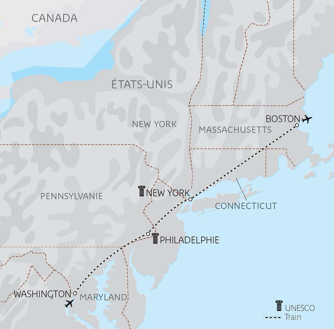 L'Est américain en train