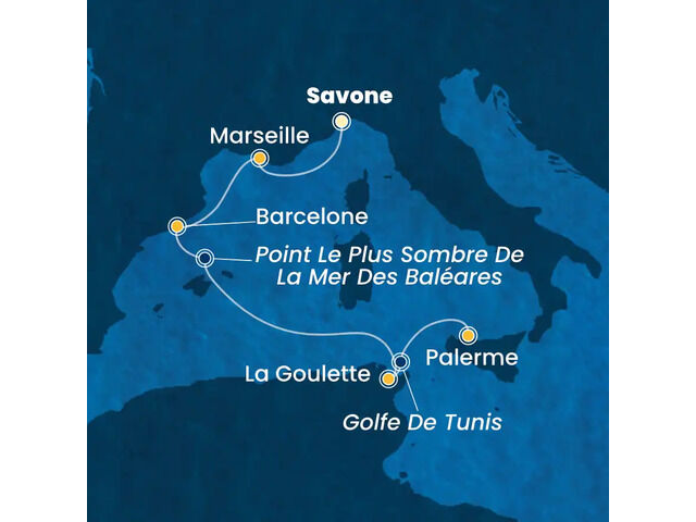 Espagne, Tunisie, Italie, France à bord du Costa Smeralda