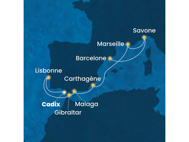 France, Espagne, Gibraltar, Maroc, Italie à bord du Costa Favolosa
