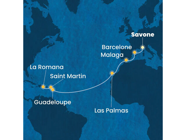 Italie, France, Espagne, Canaries, Antilles, Rép.Dominicaine avec le Costa Pacifica
